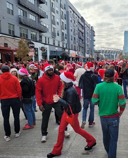 Cincinnati SantaCon covers Cincinnati (Banks/Downtown/OTR), Covington, Newport, and Mt. Adam’s. We have over 10,000 Santas and net proceeds go to The Cure Starts Now. Last year, we raised over $50,000!